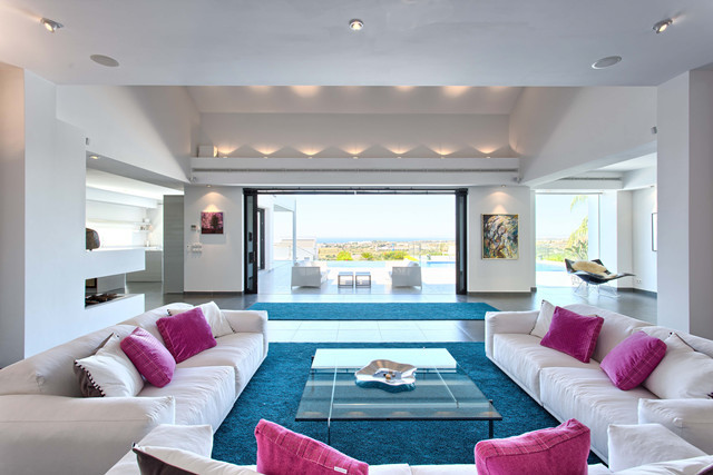 Spectacular top quality contemporary villa. South to west facing with panoramic views to the Meditarrenean and the coastline. Built to the highest standards.